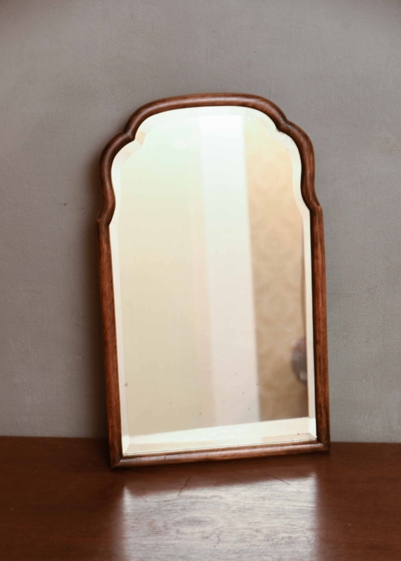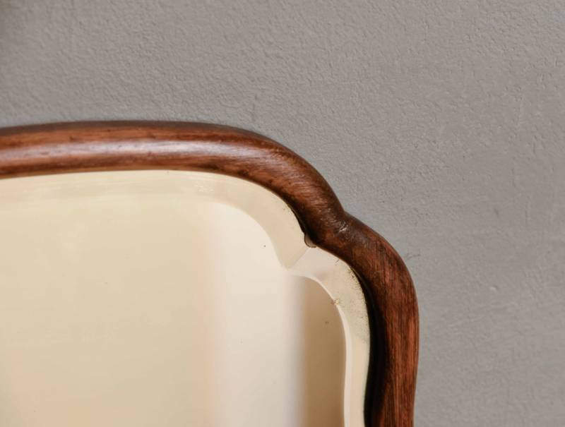 Deze vintage spiegel uit de jaren ’40 heeft zijn originele spiegelplaat met facet geslepen rand.